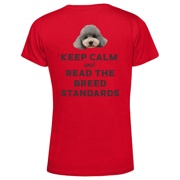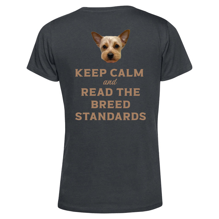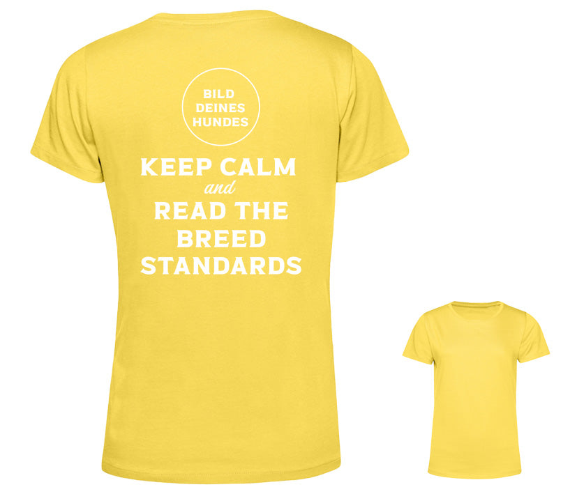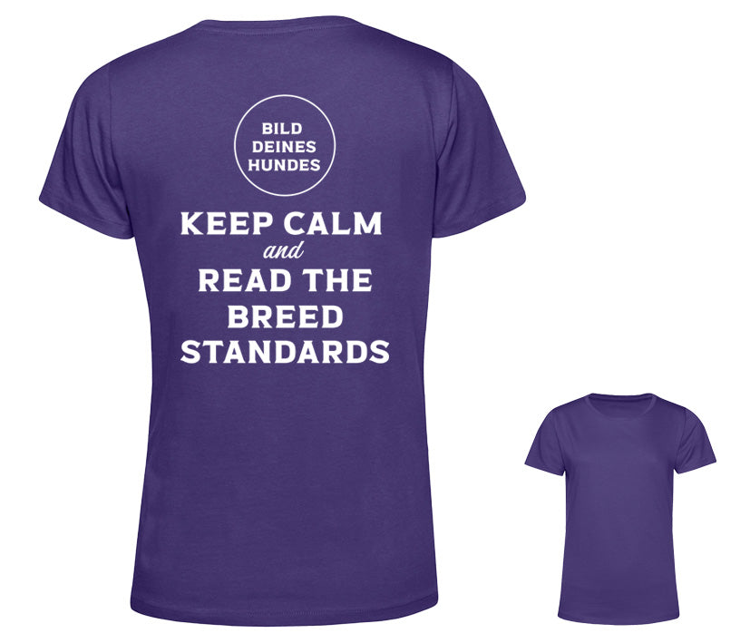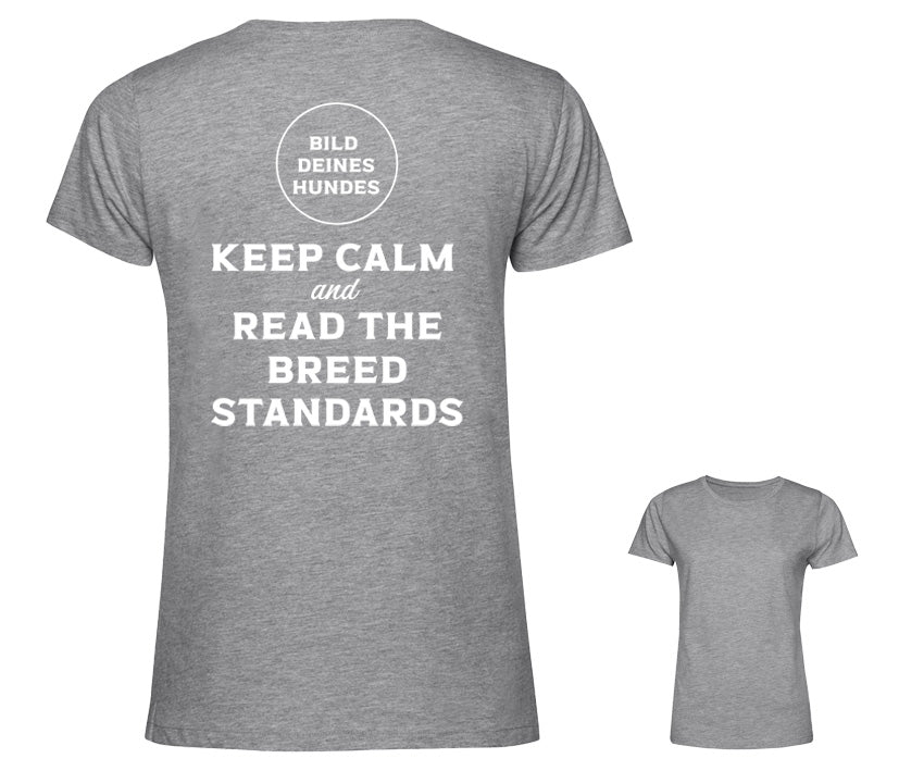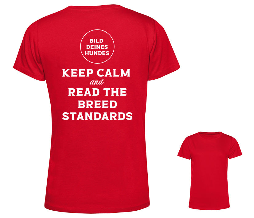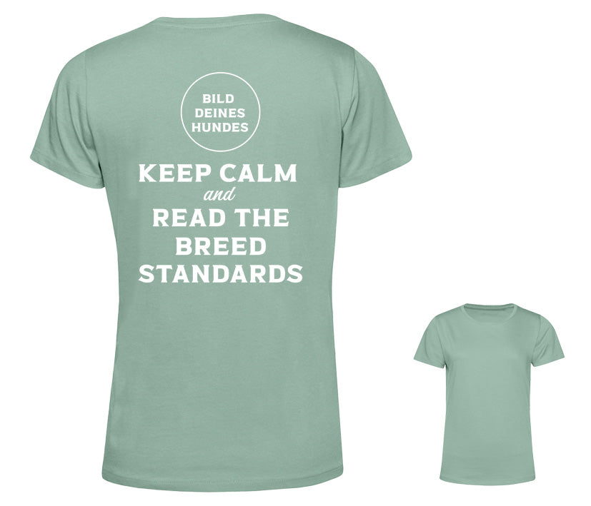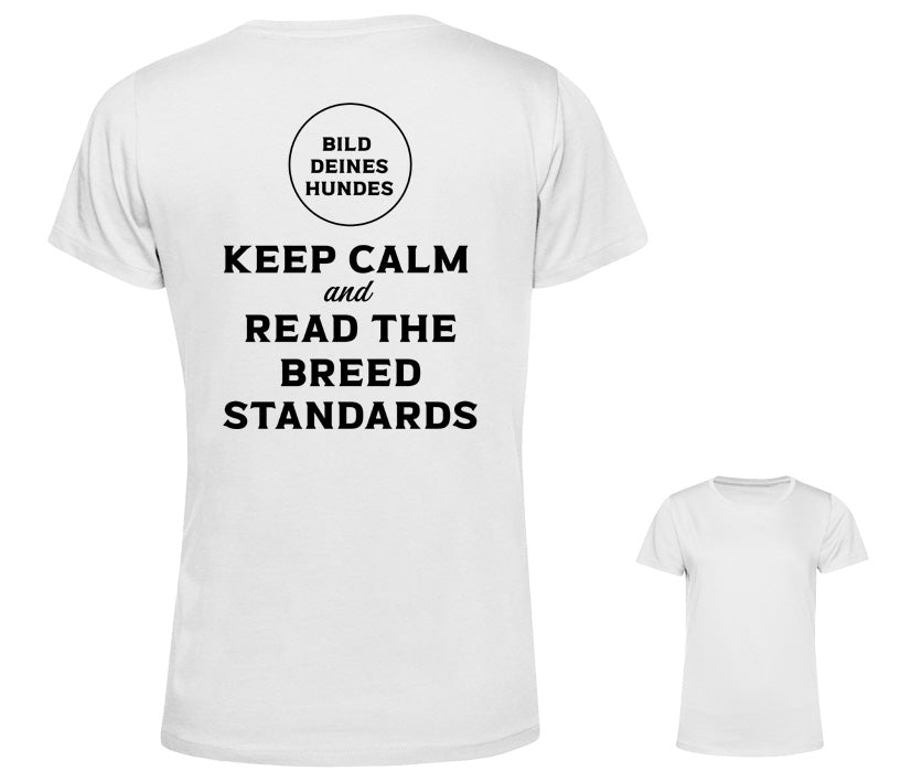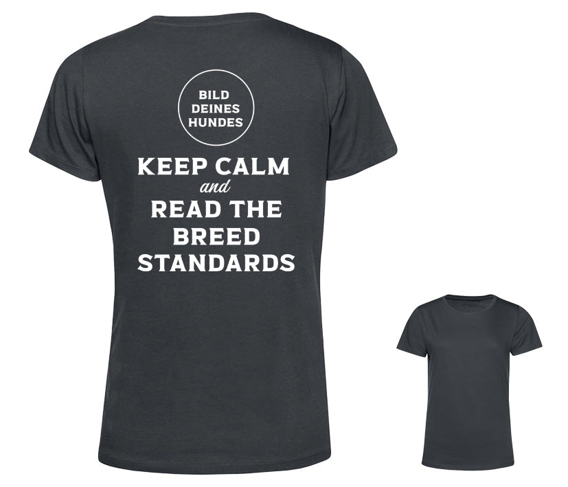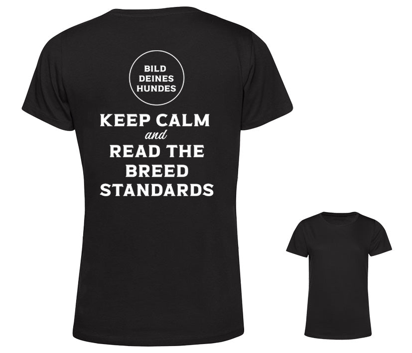 🧥 Unser hochwertiges T-Shirt aus 100% In Konversion-Bio-Baumwolle ist nicht nur ein Muss für jeden Hundeenthusiasten, sondern auch der perfekte Begleiter für warme Tage auf dem Hundeplatz, bei Ausstellungen oder einfach in der Freizeit. Mit dem kultigen Aufdruck "Keep calm and read the breed standards" setzt du ein Statement für Professionalität und Fachwissen in der Welt der Hundezucht und zeigst, dass du die Rassestandards ernst nimmst.