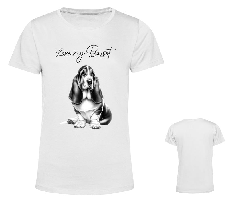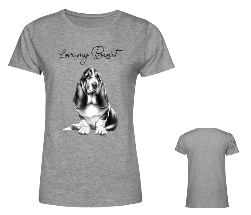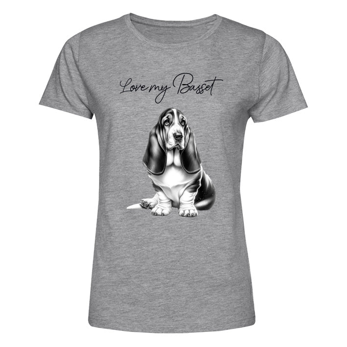 💖 Unser Damen-T-Shirt „Love my Basset“ verbindet zeitloses Design mit ganz viel Gefühl für deinen vierbeinigen Lieblingsbegleiter.