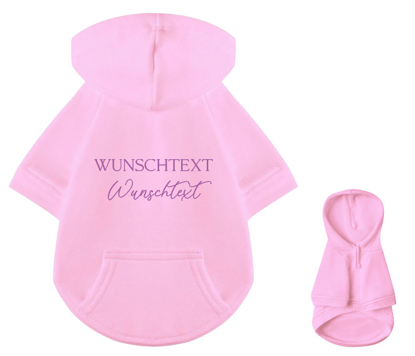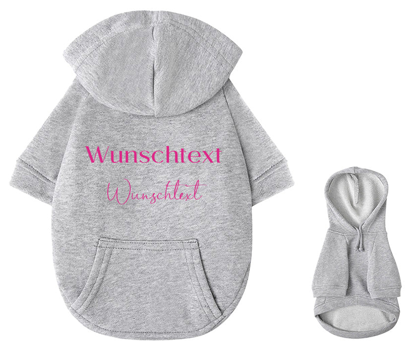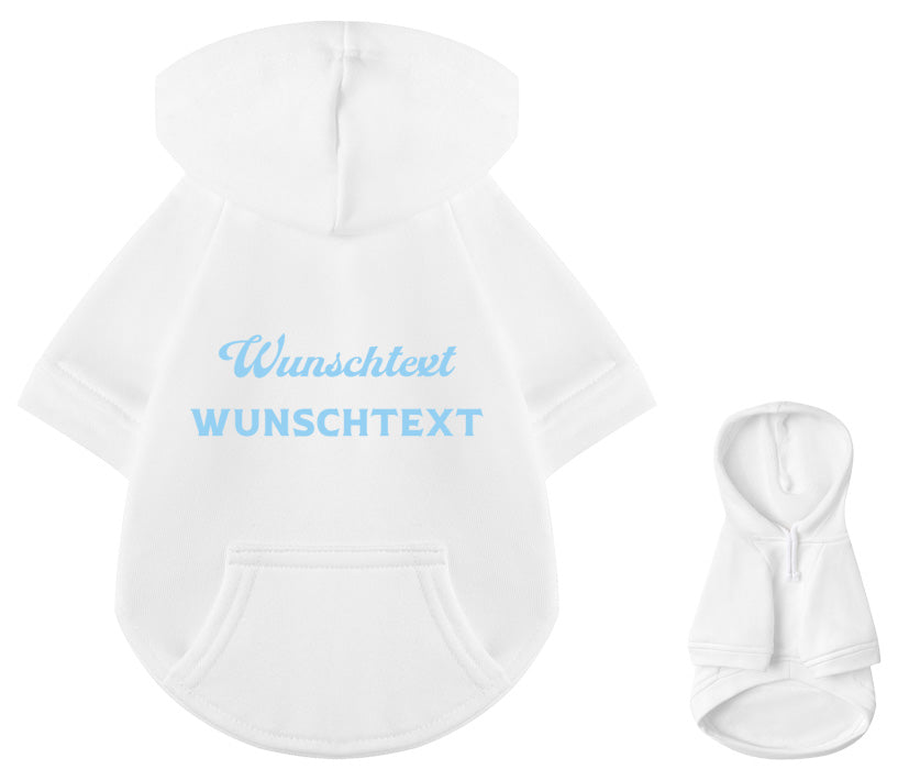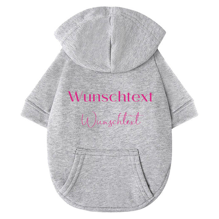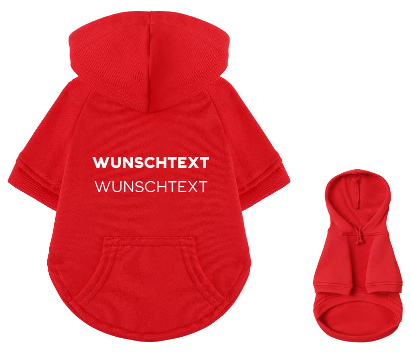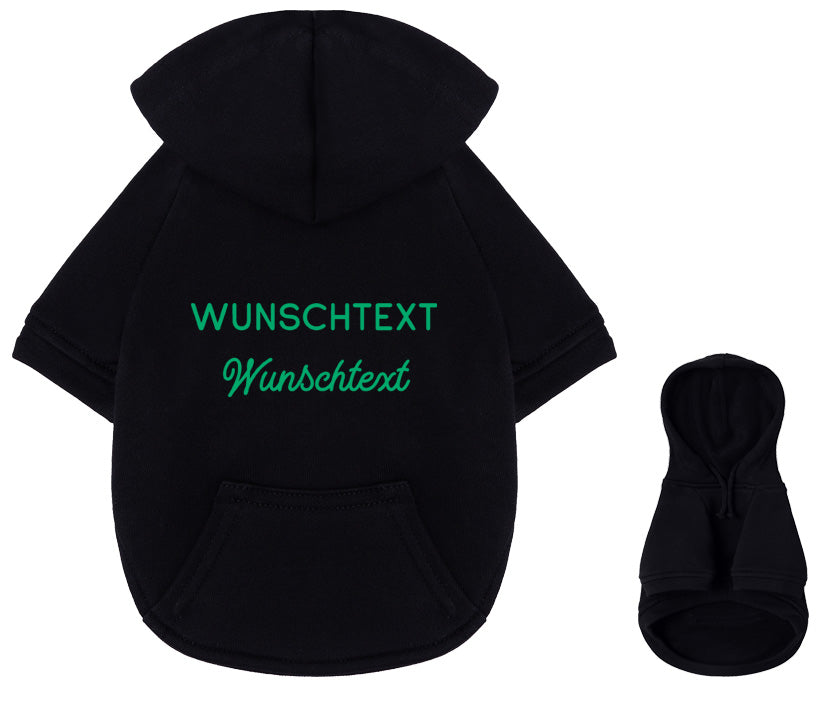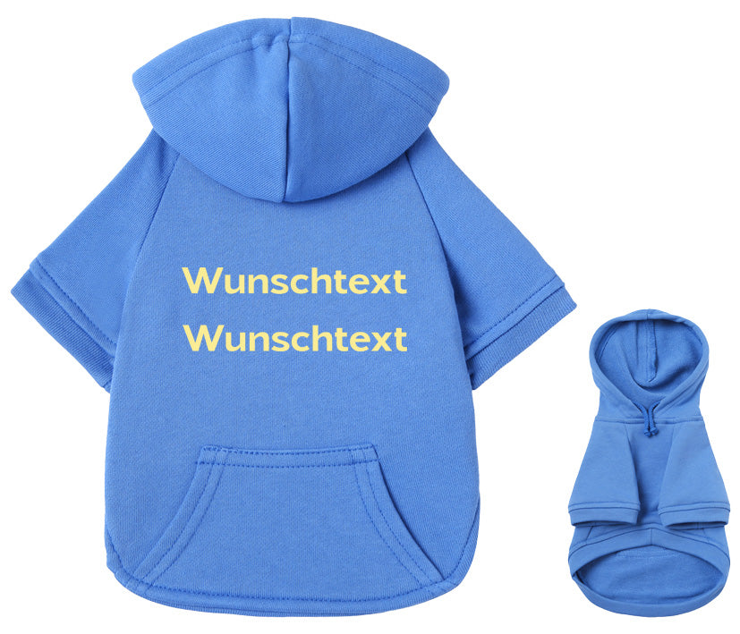 100 % personalisierbarer Hunde Hoodie  – mit Wunschtext über zwei Zeilen