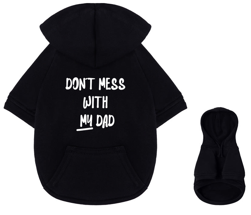 💪 Dein Hund steht zu dir – bedingungslos. Mit unserem coolen Hunde-Hoodie „Don’t mess with my dad“ zeigt dein Vierbeiner, wem sein Herz gehört.