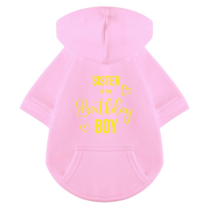 🎉 Dein Vierbeiner möchte bei der Geburtstagsparty des Hundebruders nicht hintenanstehen? Mit unserem kuscheligen Hunde-Hoodie "Sister of the Birthday Boy" wird deine Hündin zum perfekten Party-Begleiter!