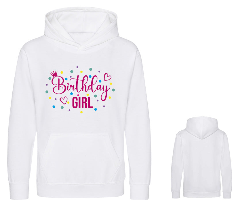 🎀 Feiere den besonderen Tag deiner kleinen Prinzessin mit unserem zauberhaften "Birthday Girl" Kinder Hoodie! Dieser süße Pullover ist Teil einer einzigartigen Familien-Kollektion, die dein Geburtstagskind zum strahlenden Mittelpunkt macht. Der kuschelige Hoodie aus hochwertigem Baumwoll-Mix sorgt für maximalen Tragekomfort während der ganzen Feier.
