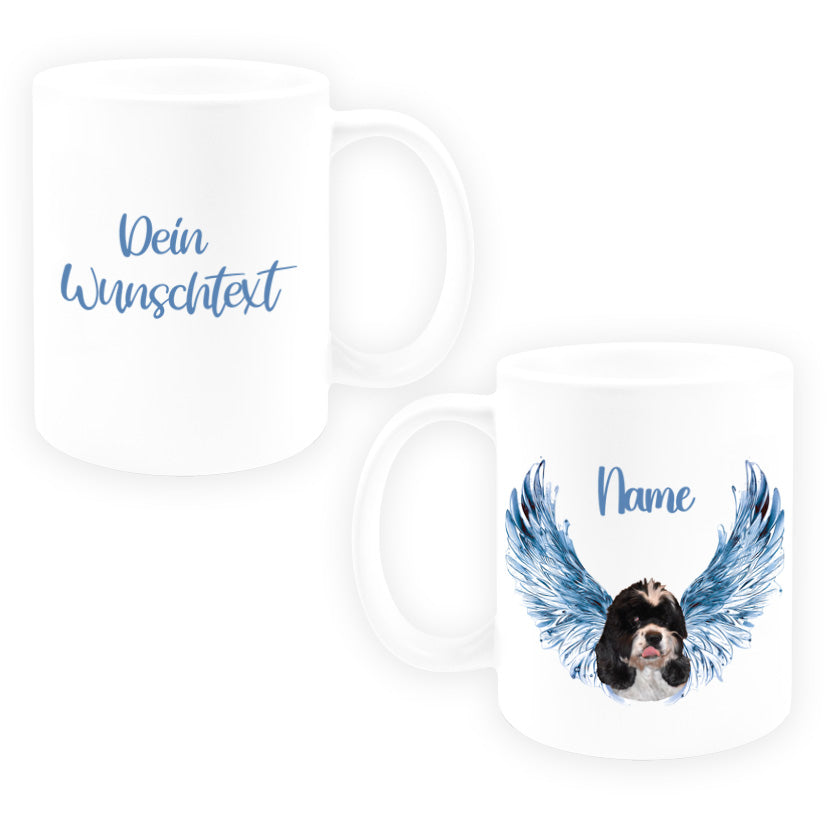 ✍️ Auf der einen Seite der hochwertigen Keramiktasse kannst du deinen ganz persönlichen Wunschtext gestalten – ein Name, ein Datum oder ein kurzer Spruch, der dich an gemeinsame Momente erinnert. Auf der anderen Seite befindet sich ein zartes Engelsflügel-Design, in das wir den Kopf deines Tieres einsetzen – zusammen mit dem Namen entsteht so ein einzigartiges, würdevolles Bild voller Liebe und Erinnerung.